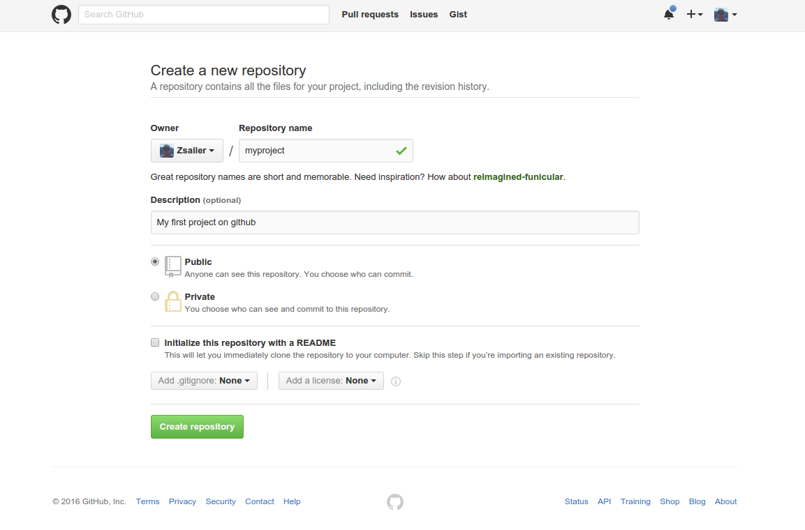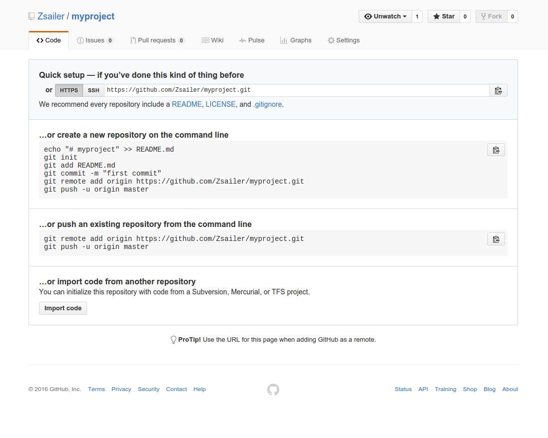 user@machine:myproject$ git remote add origin https://github.com/Zsailer/myproject